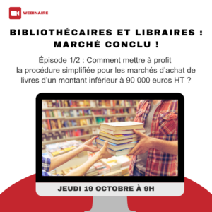 Ce webinaire rappellera les grands principes de la commande publique pour les marchés d’un montant inférieur à 90 000 € HT, et répondra aux principales questions que se posent les libraires, bibliothécaires et services juridiques des collectivités : en quoi le marché public à procédure simplifiée constitue-t-il une opportunité pour les librairies comme pour les collectivités ? Quelles sont les dispositions à connaître, et les écueils à éviter, pour mieux travailler ensemble et contribuer au développement d’une politique culturelle inscrite dans un territoire ?