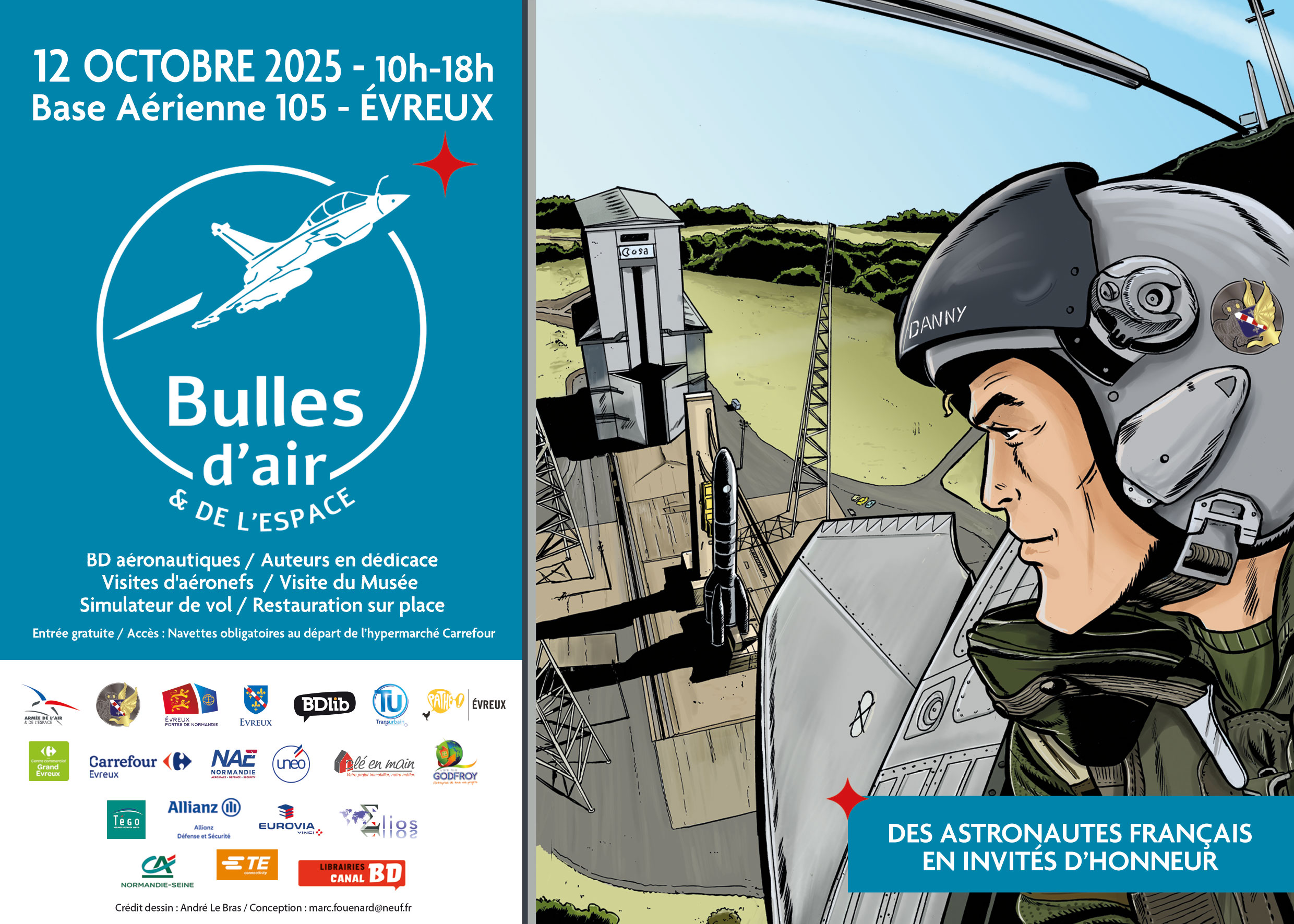 Le festival Bulles d’Air et de l'Espace, dont ce sera la 13e édition, aura lieu samedi 11 et dimanche 12 octobre 2025. Cet évènement présente l'originalité de se dérouler au cœur de la Base Aérienne 105 d’Evreux. C'est un festival |