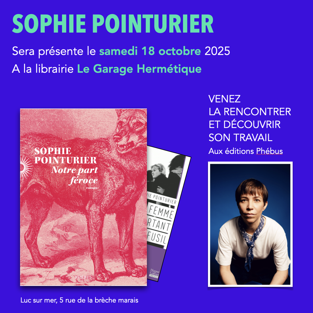 Sophie Pointurier sera présente le samedi 18 octobre 2025 à la librairie pour parler de son dernier livre Notre part féroce aux éditions Phébus. Conte moderne où l’intime passe par le fantastique, ce livre interroge la réparation de l’enfance. Sophie |
