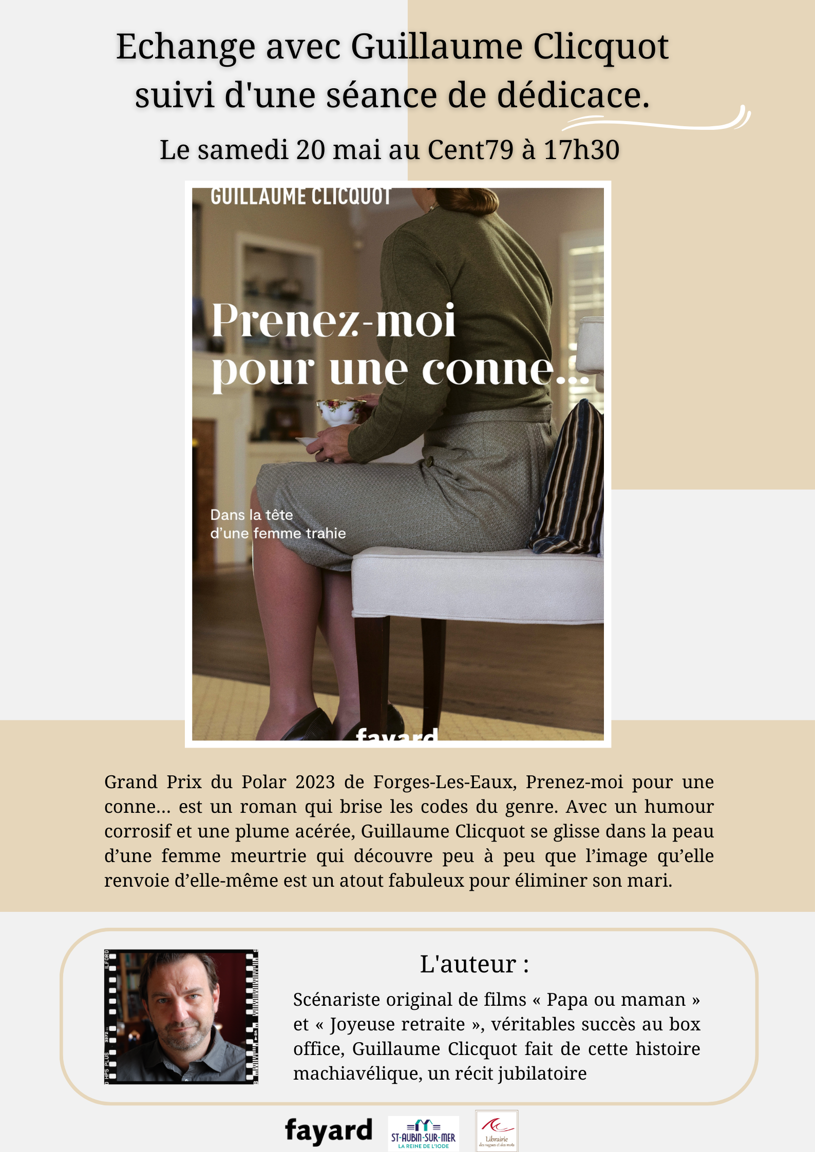 Guillaume Clicquot dédicacera son nouveau livre Prenez-moi pour une conne édité chez Fayard.