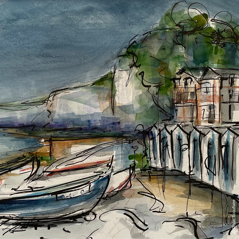 L’artiste Olivier Scouflaire présentera ses paysages maritimes réalisés à l’aquarelle et rehaussés à l’encre de chine. Il est entre autre le gagnant de la journée des peintres de l’édition 2021 de Villers-sur-Mer.