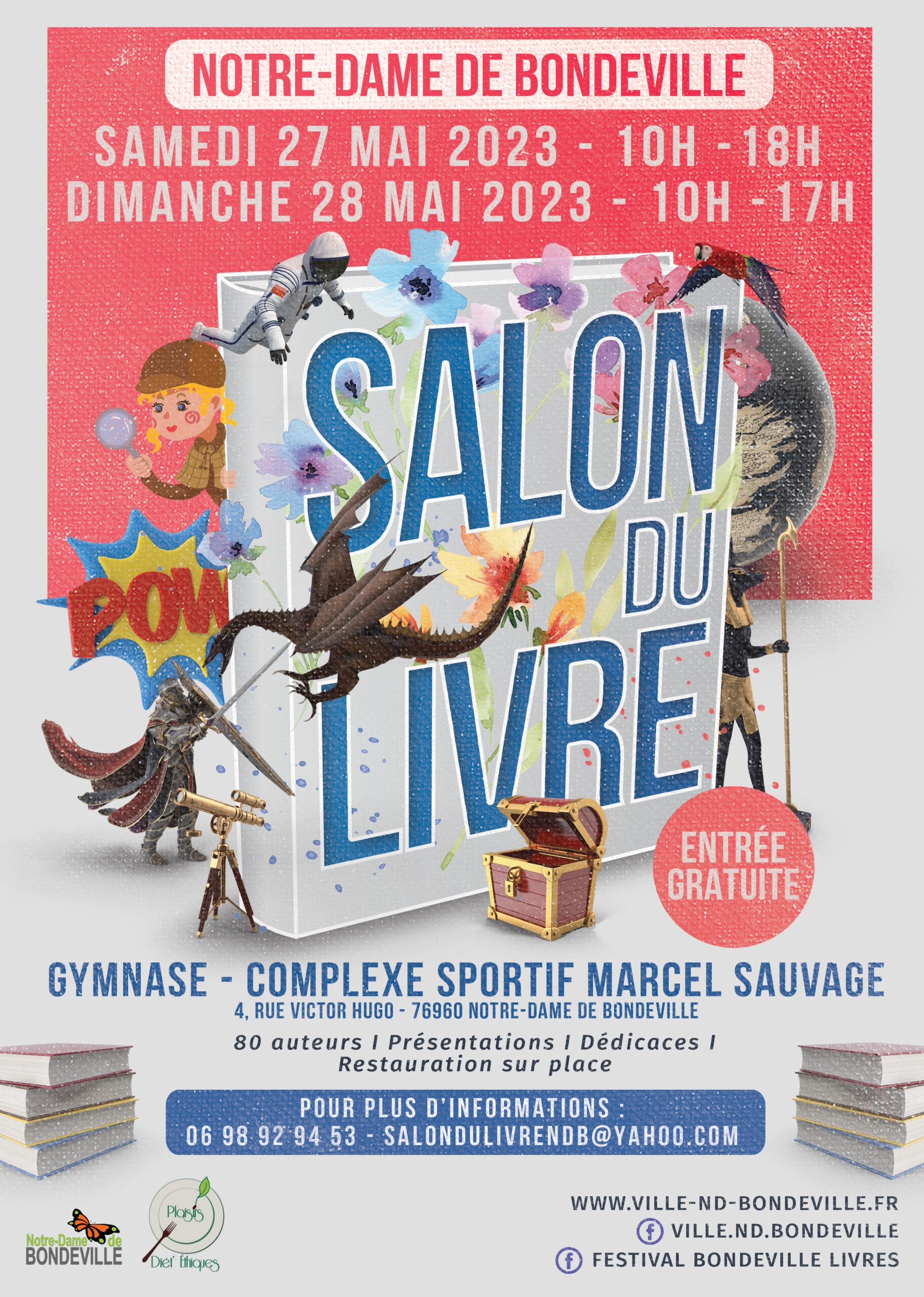 Le prochain Salon du livre de Notre-Dame de Bondeville se tiendra du 27 au 28 mai 2023 au Gymnase du Complexe sportif Marcel Sauvage.