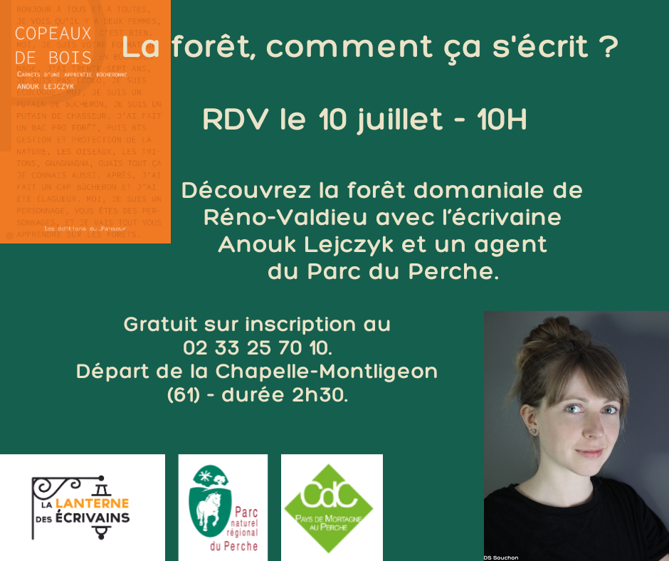 Associer balade en forêt et littérature, c'est possible ! L'écrivaine Anouk Lejczyk vous propose de la suivre sur les chemins forestiers du PNR Parc du Perche, où elle vous lira des extraits de son livre Copeaux de bois – carnets