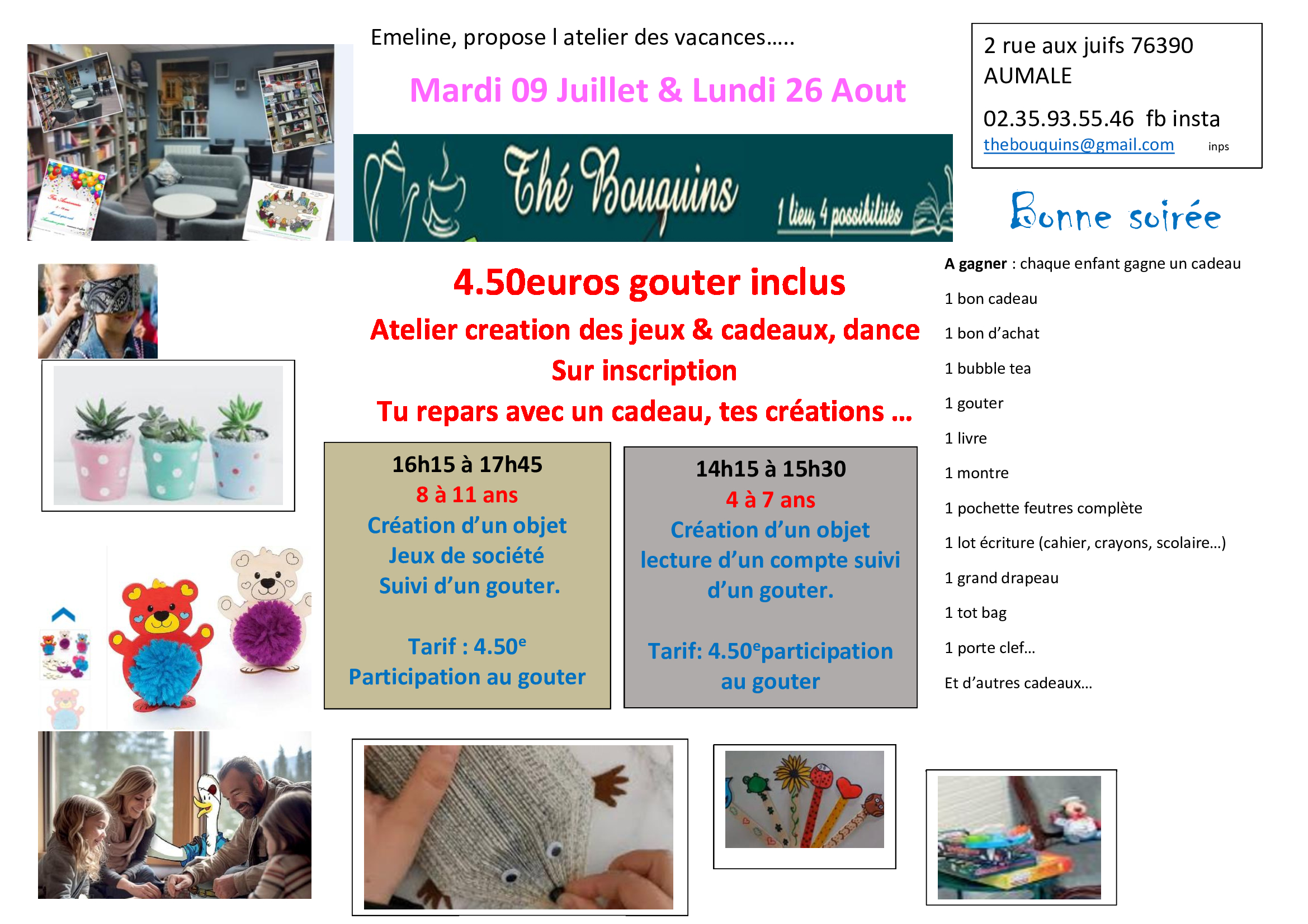 Animation. Claire Lamy de «Claire & vous» vous propose un joyeux moment en famille autour de jeux de société sur la gestion des émotions, avec un goûter. Sur réservation. Le tarif comprend l'atelier, un sirop artisanal et une pâtisserie.