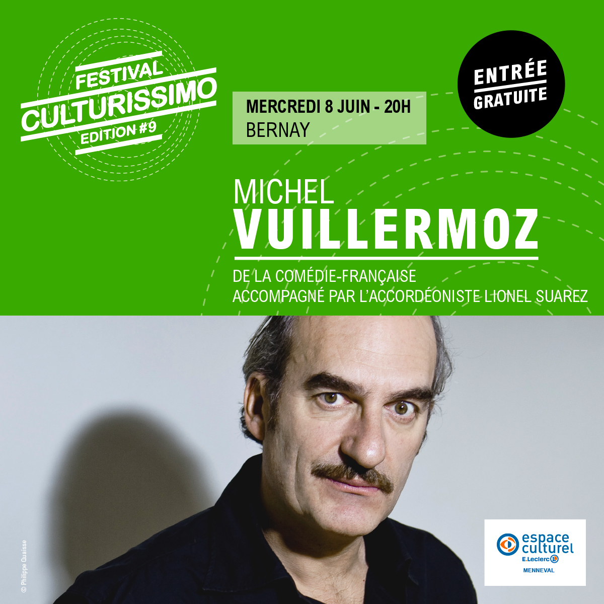 À l’occasion du Festival Culturissimo, le Théâtre Le Piaf à Bernay accueille le mercredi 8 juin à 20 h le comédien Michel Vuillermoz de la Comédie Française, accompagné par l’accordéoniste Lionel Suarez, pour une lecture de l’ouvrage Le grand monde de