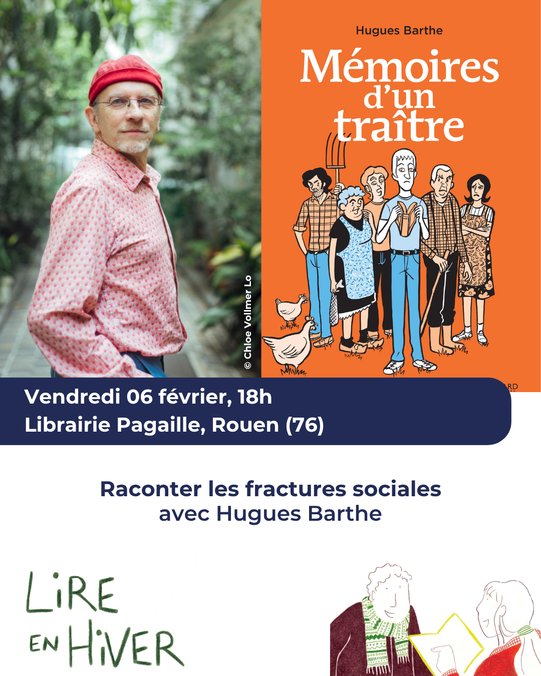 Nouvelle BD autobiographique pour Hugues Barthe (Mémoires d’un traître, Gallimard, 2025), dans laquelle il raconte sa rencontre avec un jeune couple de citadins s’installant en 1979 dans son petit village. Le jeune garçon d’alors 14 ans est intrigué par Viviane très différente des femmes de son entourage : elle lit, écoute de la musique et a un riche vocabulaire. Un récit autour des transfuges de classe.