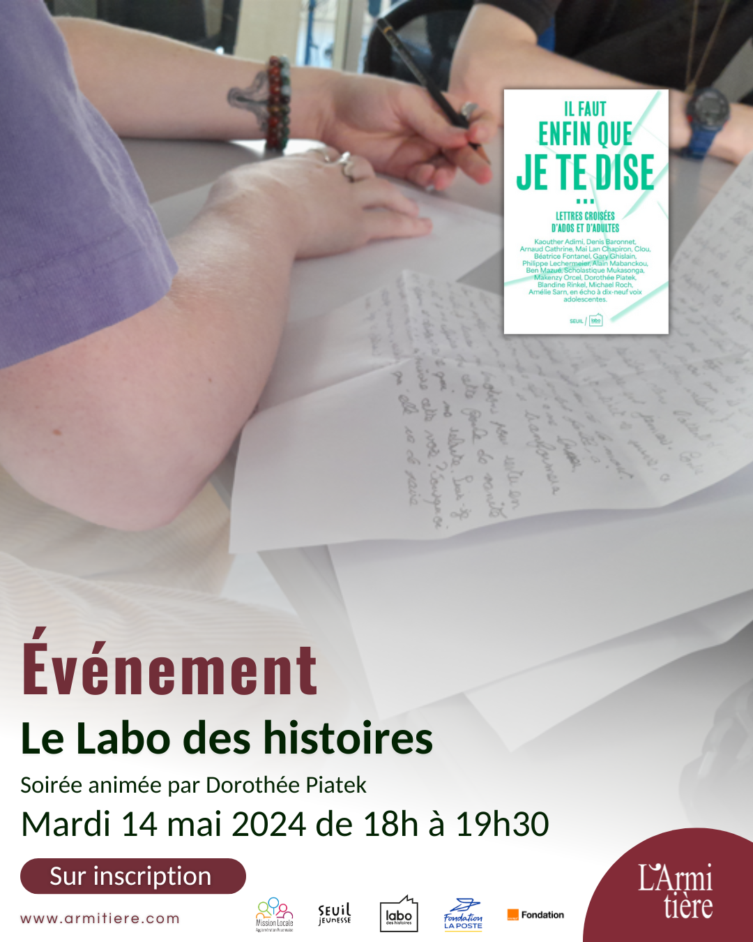 Le Labo des histoires Normandie vous invite à le rejoindre pour la rencontre qu’il organise le mardi 14 mai à 18h avec la Mission Locale de Rouen, pour célébrer la sortie de l’ouvrage « Il faut enfin que je te dise.. » aux éditions du Seuil.
