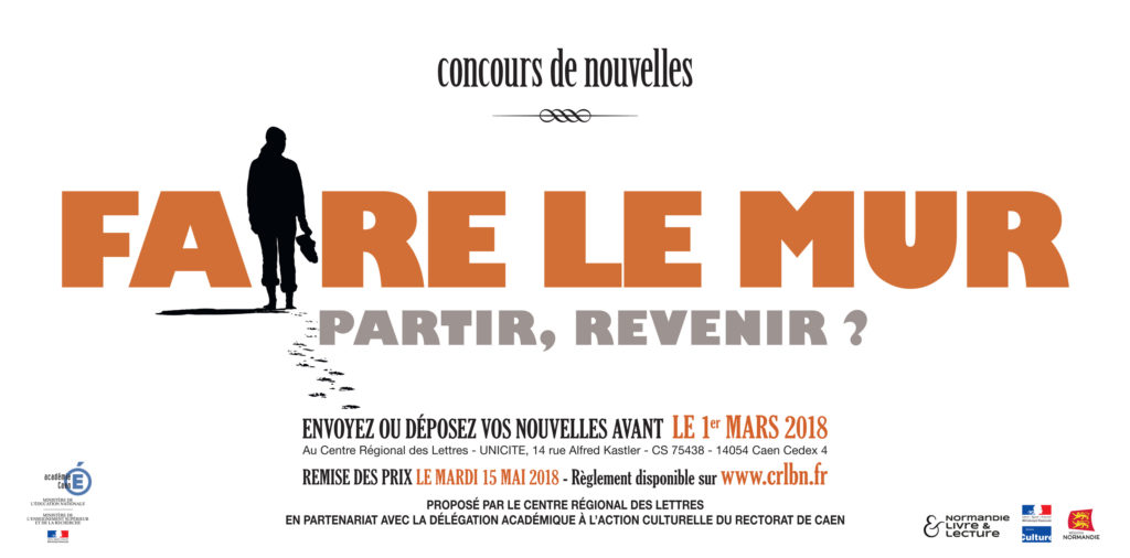 Normandie Livre & Lecture propose chaque année un concours de nouvelles destiné aux adultes et, en partenariat avec la délégation académique à l’action culturelle du rectorat de Caen, aux lycéens. Pour cette douzième édition, le thème retenu s’inscrit dans une programmation autour de la thématique du mur proposée par la Ville de Caen et se déroulant sur toute l’année 2018.