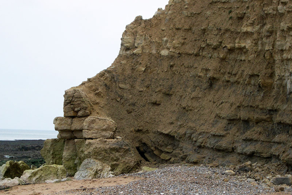Des vallonnements herbeux découpaient la falaise, composée d’une terre molle et brune et qui se durcissant devenait dans ses strates inférieures, une muraille de pierre grise. Des filets d’eau en tombaient sans discontinuer, pendant que la mer au loin, grondait. Elle semblait parfois suspendre son battement ; – et on n’entendait plus que le petit bruit des sources.