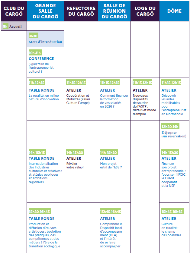Cette deuxième édition normande est pensée afin de permettre aux différentes filières de dialoguer et d’échanger autour de leurs expériences et de leurs pratiques en matière d’entrepreneuriat culturel.