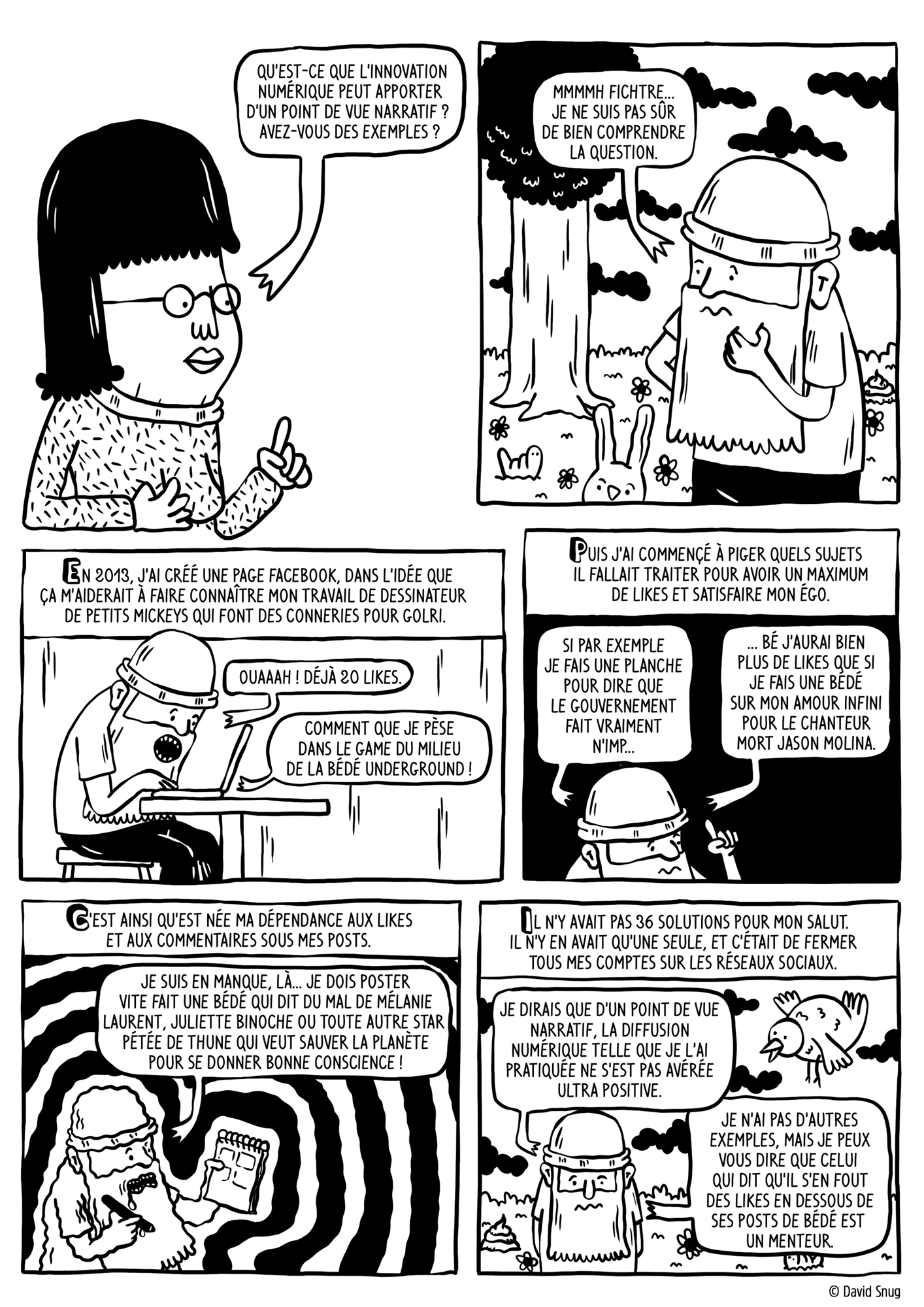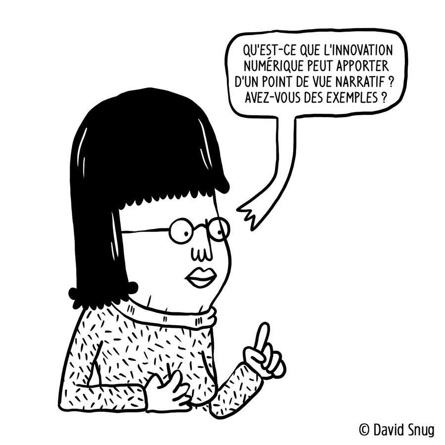 - Que peut apporter l'innovation numérique d'un point de vue narratif ? (voir la planche intégrale de David Snug)