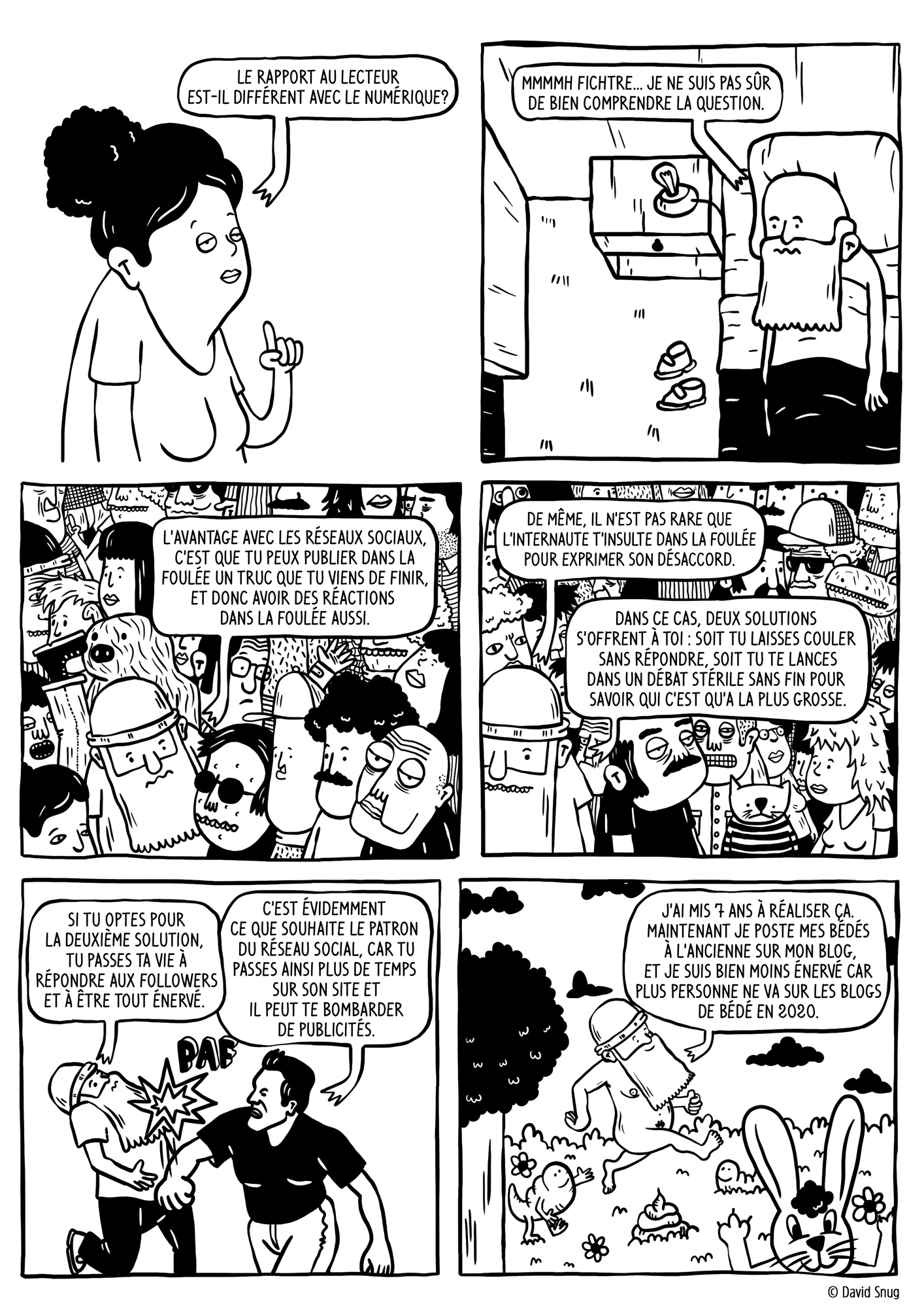 - Le numérique implique t'il un rapport différent au lecteur ? (voir la planche intégrale de David Snug)