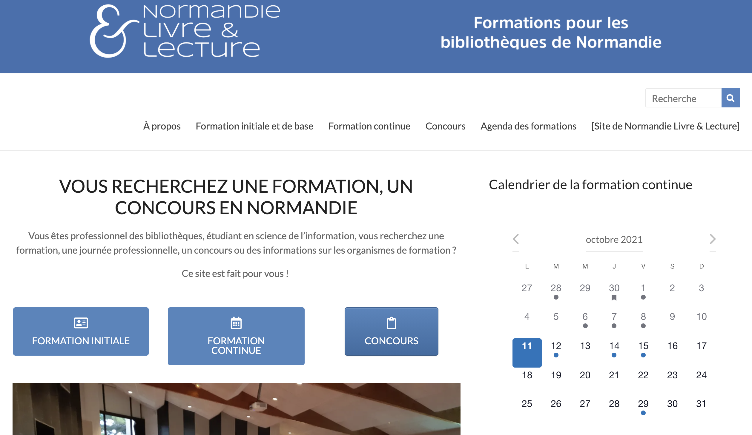 Vous êtes professionnel des bibliothèques, étudiant en science de l’information, vous recherchez une formation, une journée professionnelle, un concours ou des informations sur les organismes de formation ? C’est désormais possible, grâce à ce site qui répertorie les formations proposées par les différents organismes de Normandie.