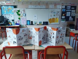 C'est pourquoi, à l'aide d'une frise réalisée par l'illustratrice Alice Dufay et grâce à des contenus fournis par des professionnels du livre de la région, Normandie Livre & Lecture a mis au point une mallette pédagogique pour aller à la rencontre des élèves d'école élémentaire.