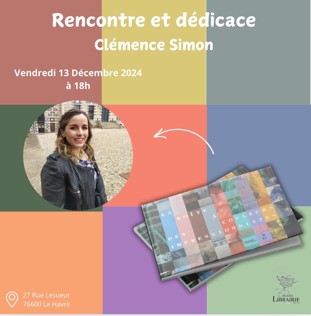 Rendez-vous le vendredi 13 décembre 2024 à 18h à La petite librairie pour une rencontre unique avec Clémence Simon, autour de son magnifique ouvrage “La boîte à couleurs des impressionnistes”.