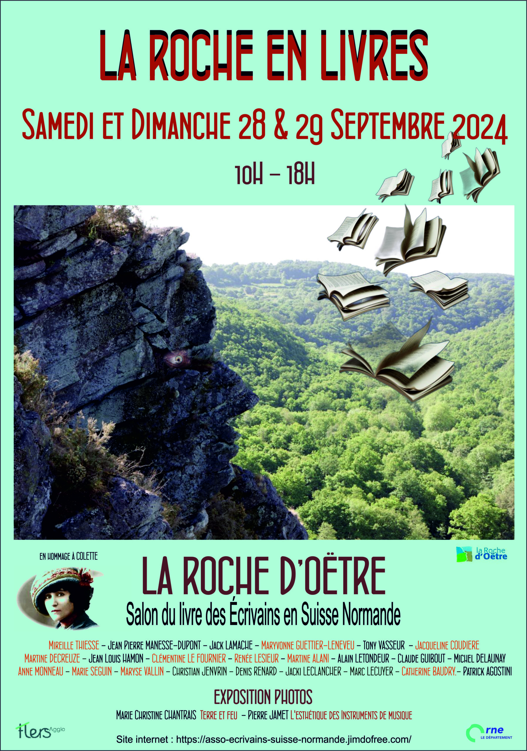 Tous les deux ans, les écrivains en Suisse Normande installent leur salon du livre à la Roche d'Oëtre, un cadre magnifique qui accueille les autrices/auteurs avec leurs lectrices/lecteurs pendant deux jours de réjouissance autour du livre. Animations, lectures, tout est