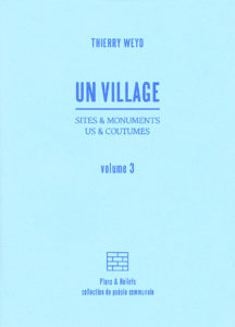Cette collection de textes courts et de poèmes est un panorama pittoresque peigné par Thierry Weyd depuis 2018, un ensemble de portraits et de paysages esquissés lors de l'exploration immobile d'un village imaginaire et sans qualité, ainsi que de ses alentours. Ces ouvrages sont aussi des livrets de lectures/concerts et l'objet de plusieurs adaptations radiophoniques. Made by hands – Made with love.