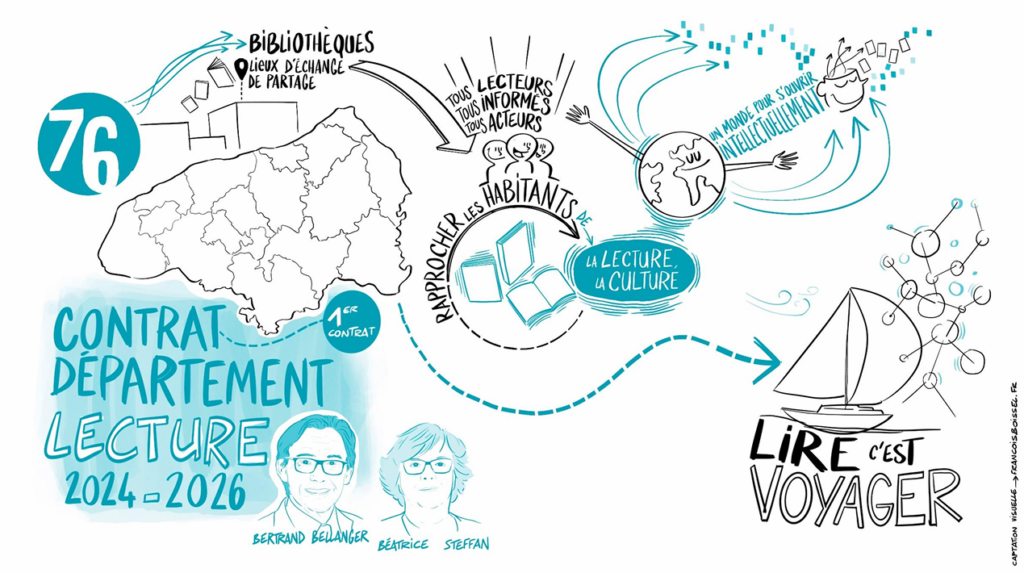 Cette journée s’inscrit dans le Contrat département Lecture signé le matin par le Président du Département, Bertrand Bellanger, ainsi que par l’État, représentée par Béatrice Steffan, secrétaire générale de la préfecture de la Seine-Maritime.